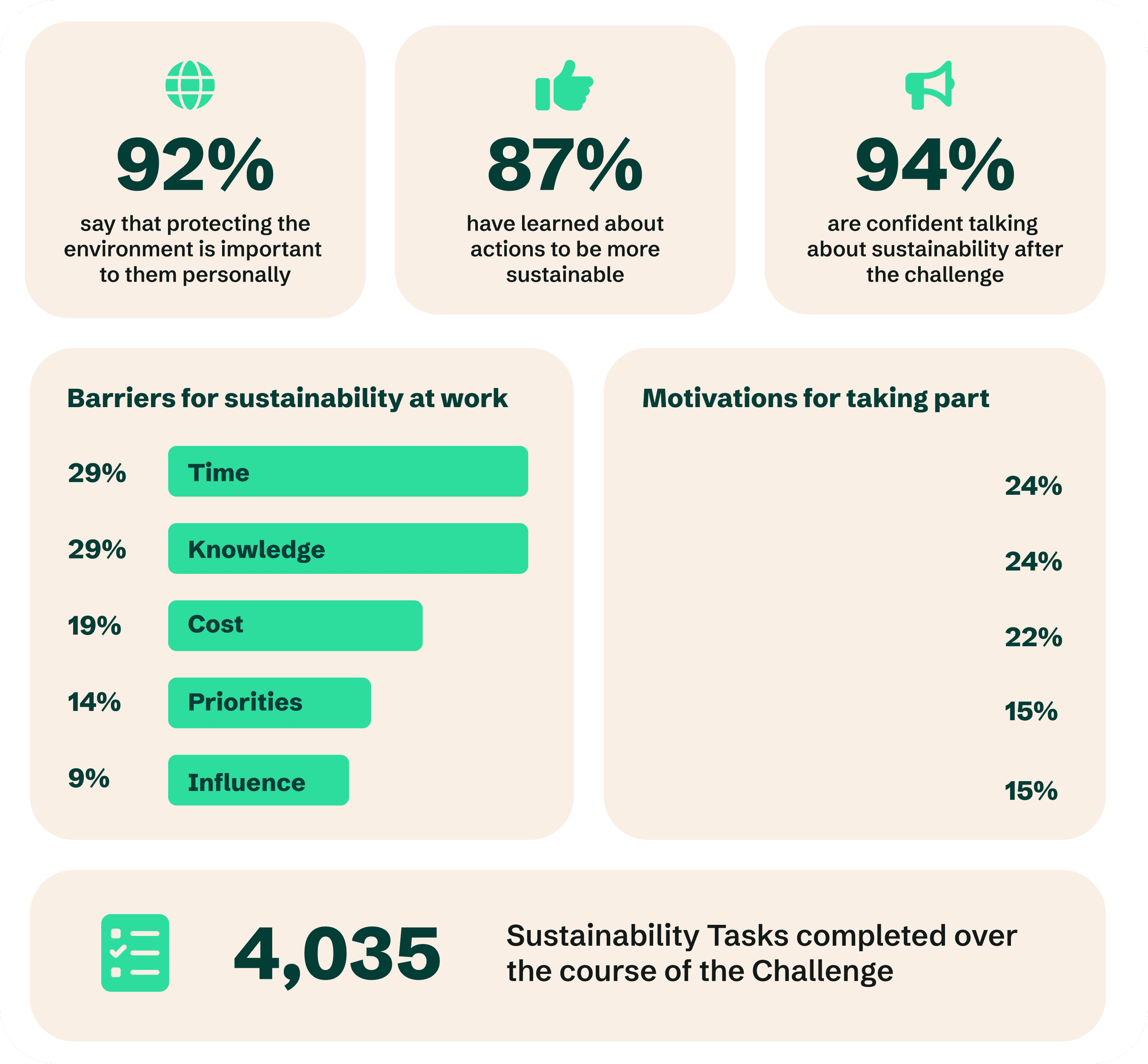 The Sustainability Challenge is a 2-week, team-based Challenge that helps colleagues build new sustainability habits in a fun and interactive way together.